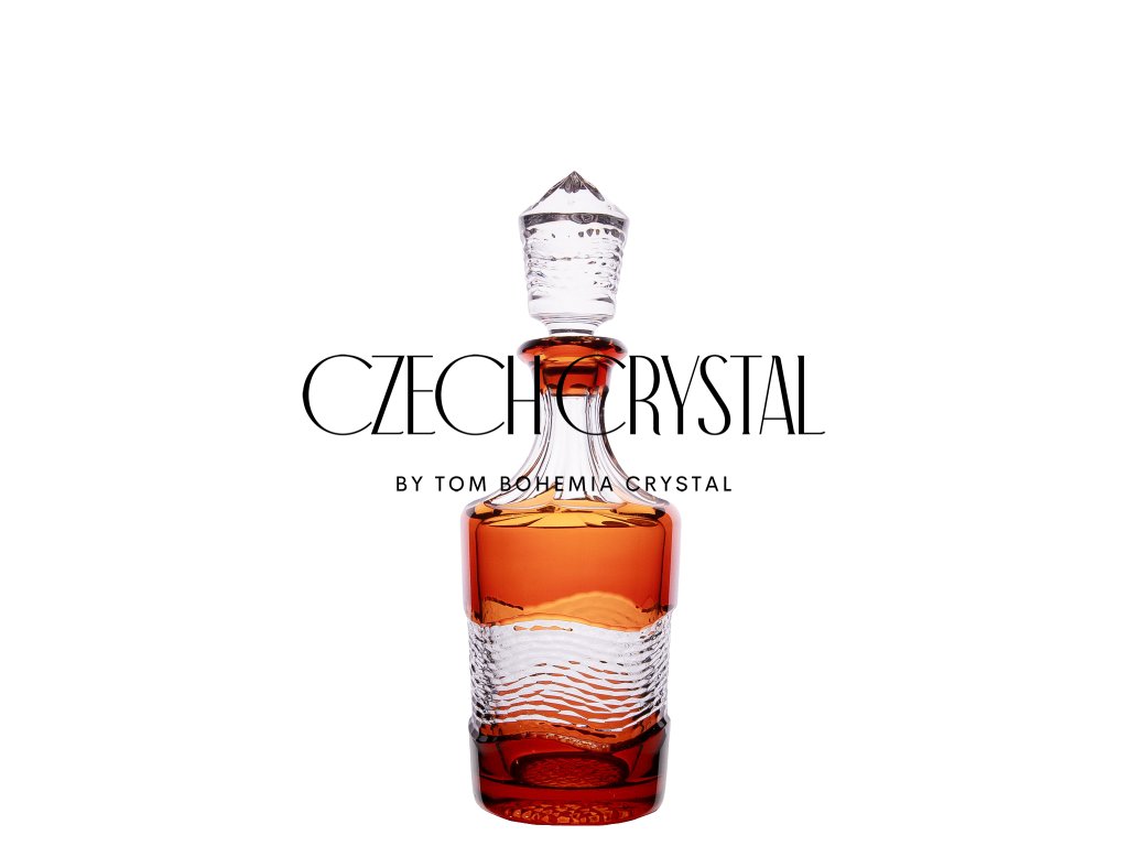 Elegant handcrafted crystal decanter that combines timeless craftsmanship with modern sculptural design. The lower part features a distinctive textured cut pattern that beautifully refracts light, while the upper body flows smoothly into a warm amber-toned crystal accent, adding depth and richness to the silhouette.
