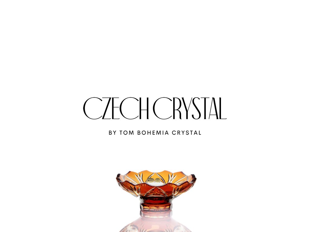 The Owl décor embodies refined craftsmanship and timeless Bohemian elegance. This hand-cut crystal bowl on foot features a rich amber color layered within clear crystal, creating a warm, luminous glow that enhances the depth of every cut.