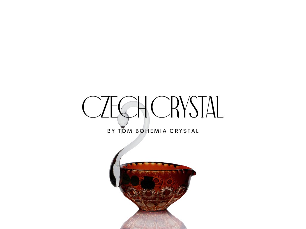 This elegant decorative bowl in the shape of a swan is a fine example of traditional Czech glass craftsmanship. The body of the bowl is made from richly colored amber crystal, beautifully cut to enhance the way it reflects and refracts light. Intricate hand-cut starburst and geometric patterns add depth, brilliance, and a luxurious character.