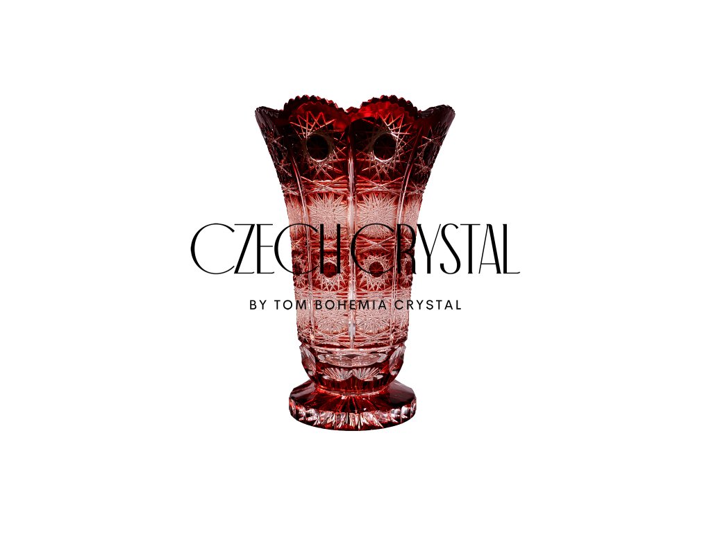 This refined vase is crafted from luxurious double-layer Bohemian crystal, where the deep ruby colour is created using precious minerals and then carefully hand-cut to reveal the clear crystal beneath. The result is a stunning interplay of colour and light, enhanced by intricate starburst and geometric patterns.